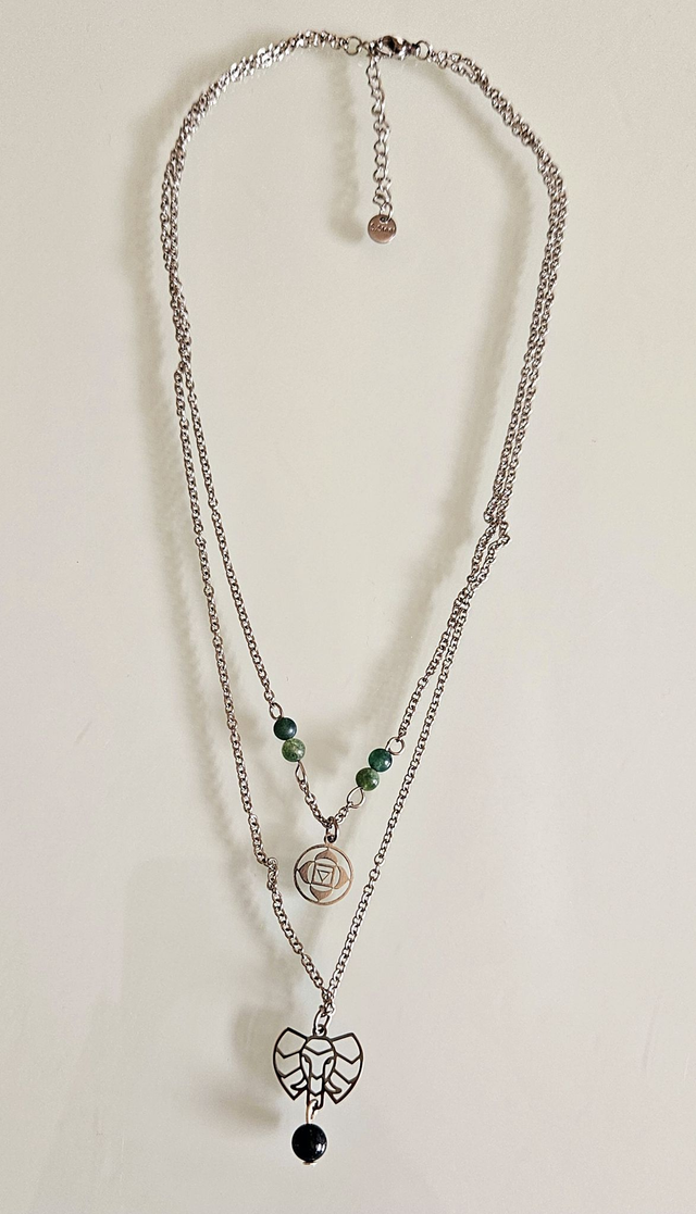 Collier Argenté CHAKRA RACINE "Agate Mousse" & Symbole Sacré – Bijou lithothérapie