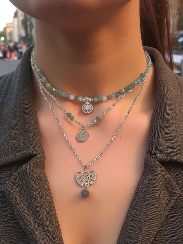 Collier en pierres naturelles de 3/4mm, accompagné de breloques et chaîne en acier inoxydable.