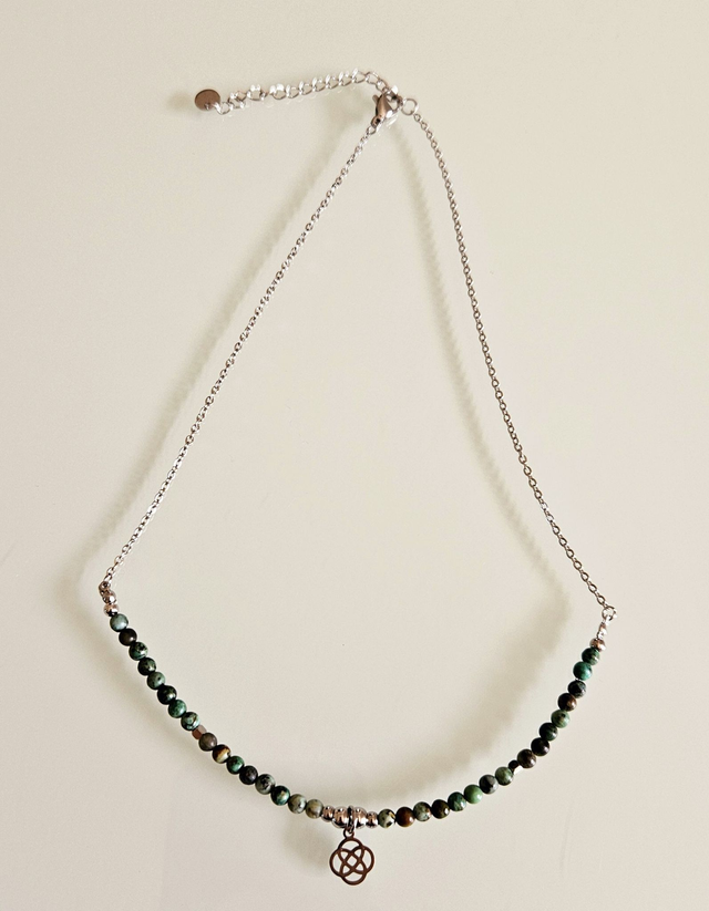 Ras de cou Argenté "Turquoise" & Symbole Sacré – Bijou lithothérapie
