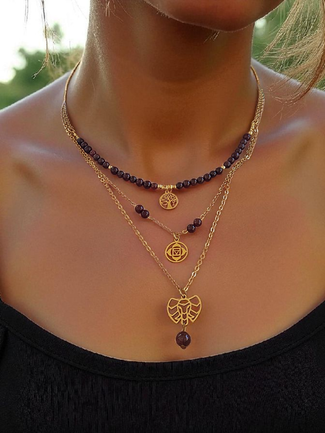 Ras de cou Doré "Grenat" & Symbole Sacré – Bijou lithothérapie
