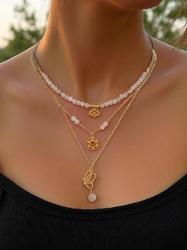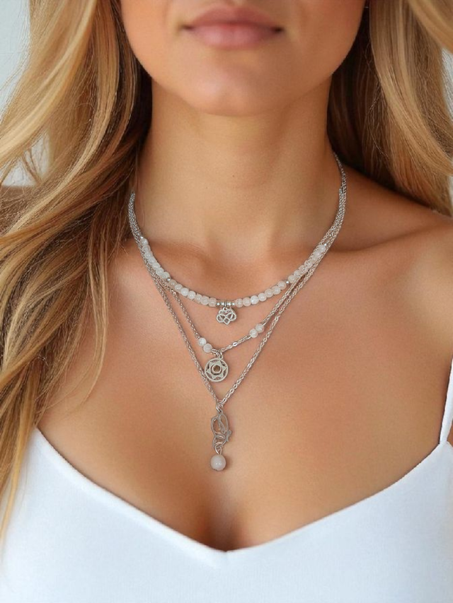 Collier en pierres naturelles de 3/4mm, accompagné de breloques et chaîne en acier inoxydable.