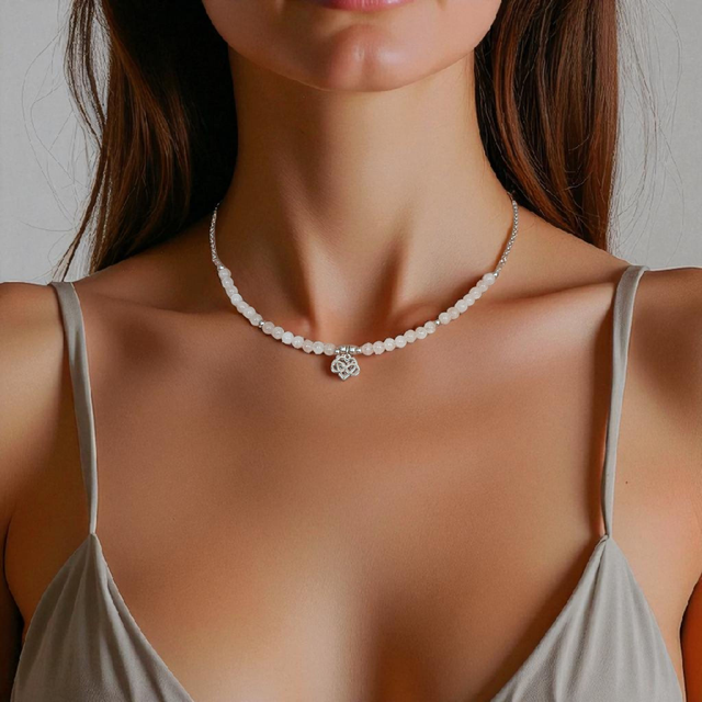 Ras de cou "Pierre de Lune" & Symbole Sacré – Bijou lithothérapie